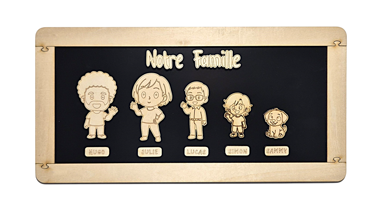 3. Design Artistique : Chaque panneau est une création artistique soigneusement conçue, capturant l'essence de chaque membre de la famille avec des contours expressifs.